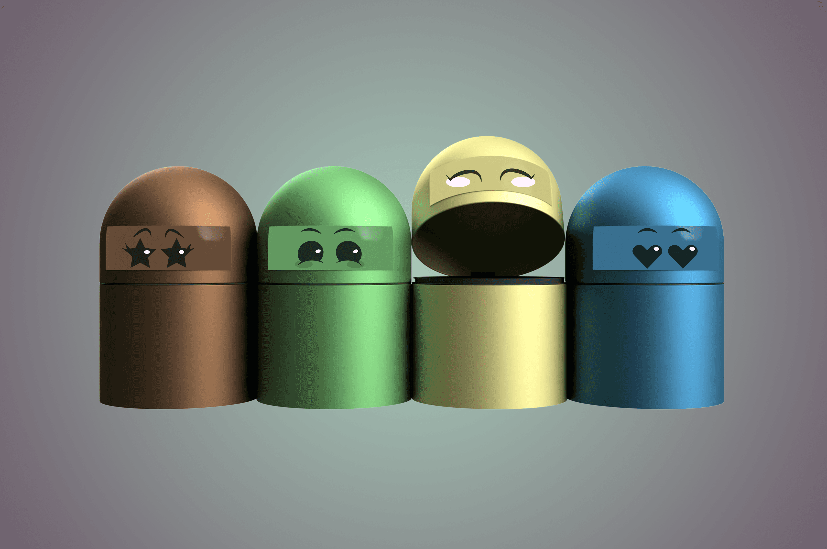 Ecoponto inteligente com caracteristicas humanas e som responsivo. - Transforma a tarefa da reciclagem num momento mais envolvente ao induzir no utilizador uma perceção de sociabilidade durante a ação de separar o lixo, o que simultâneamente proporciona uma maior sensação de bem-estar.