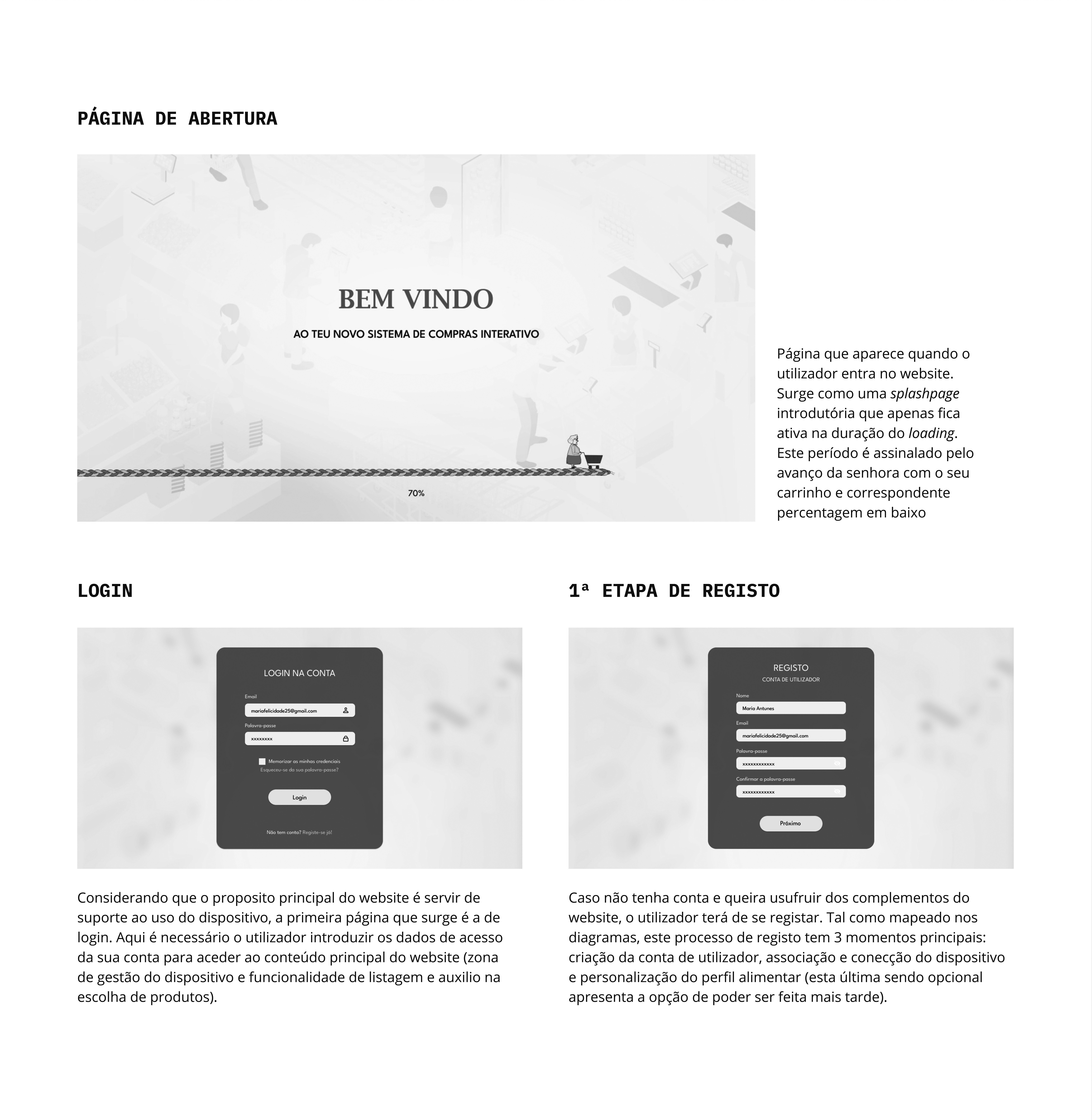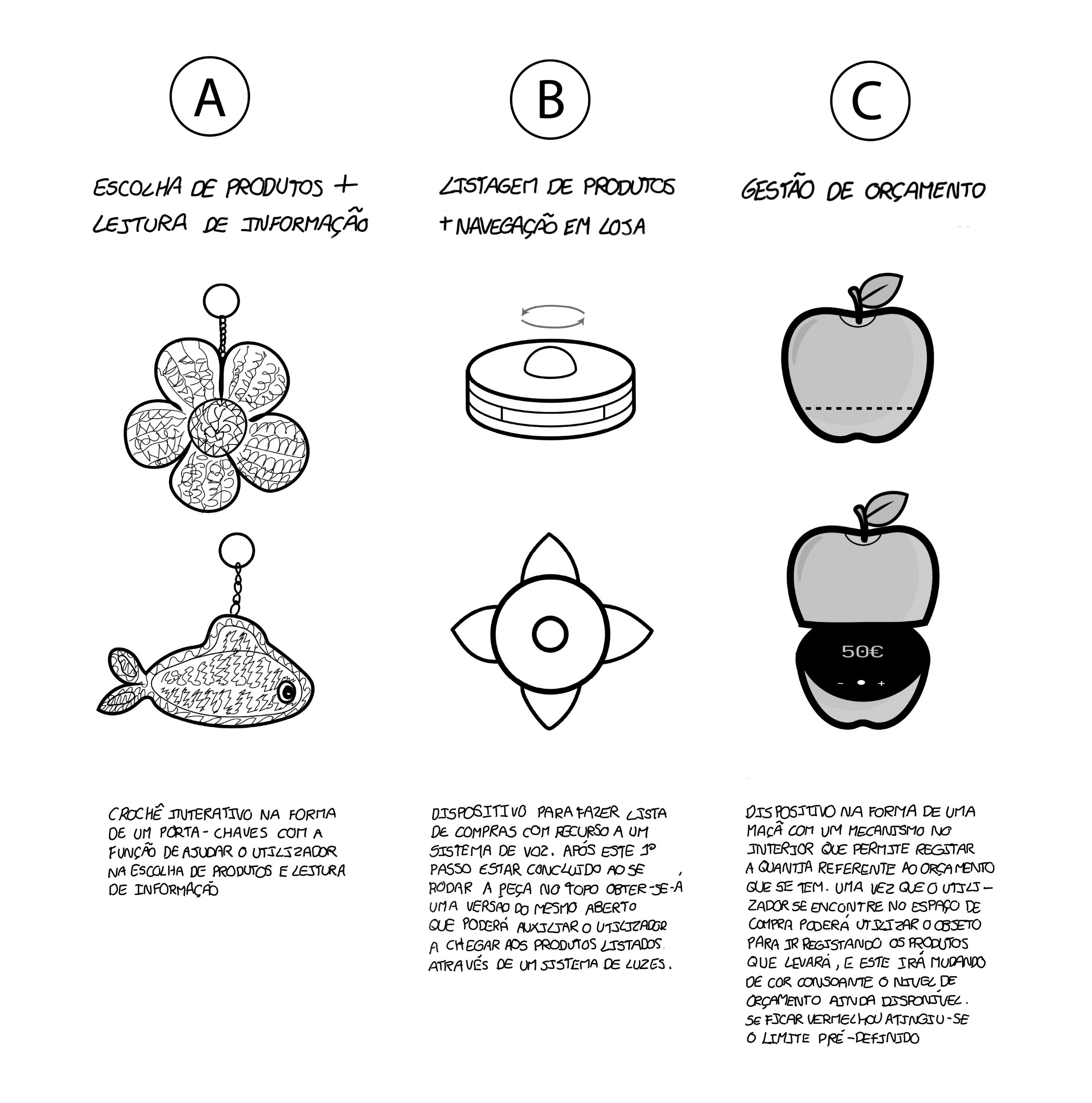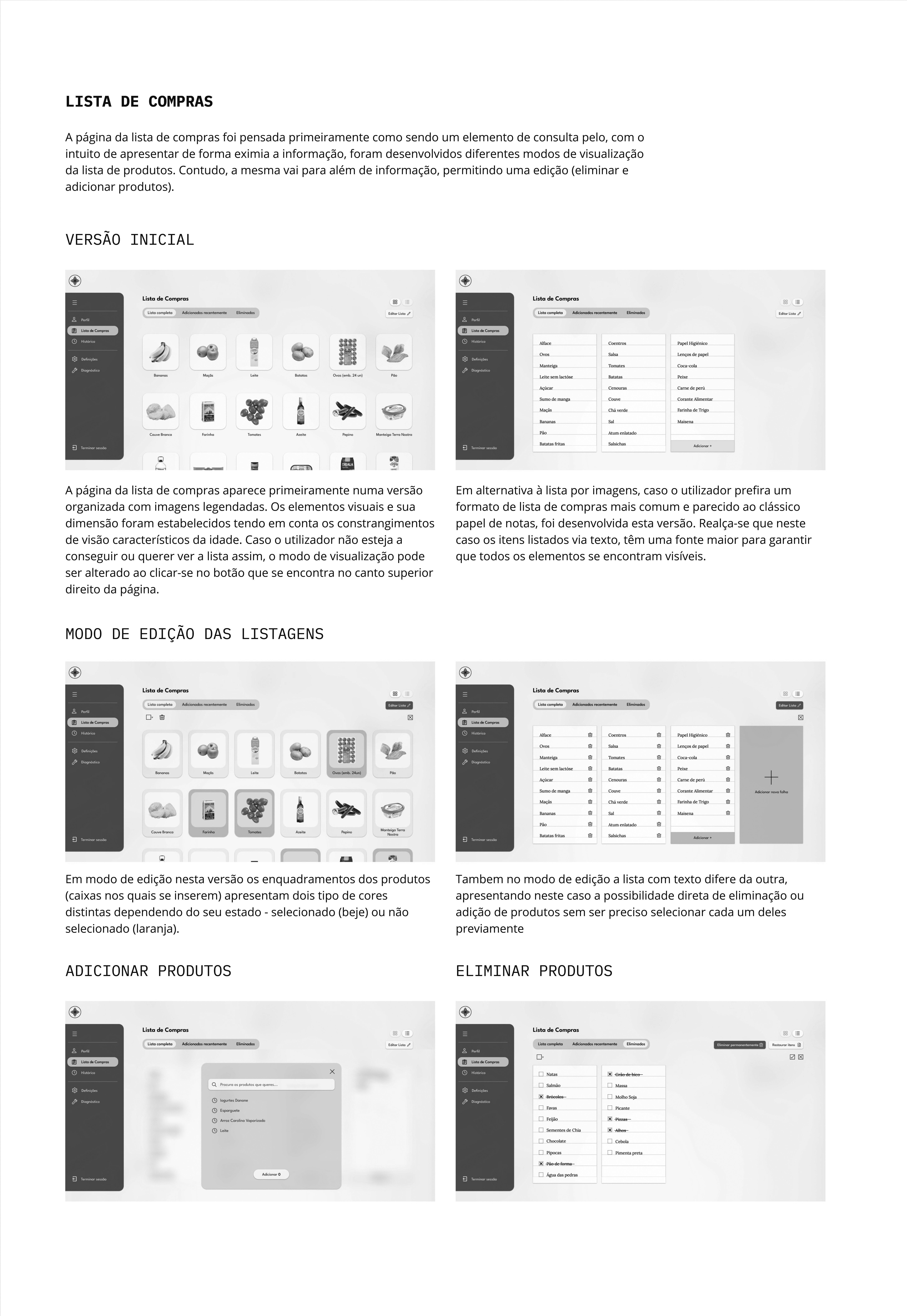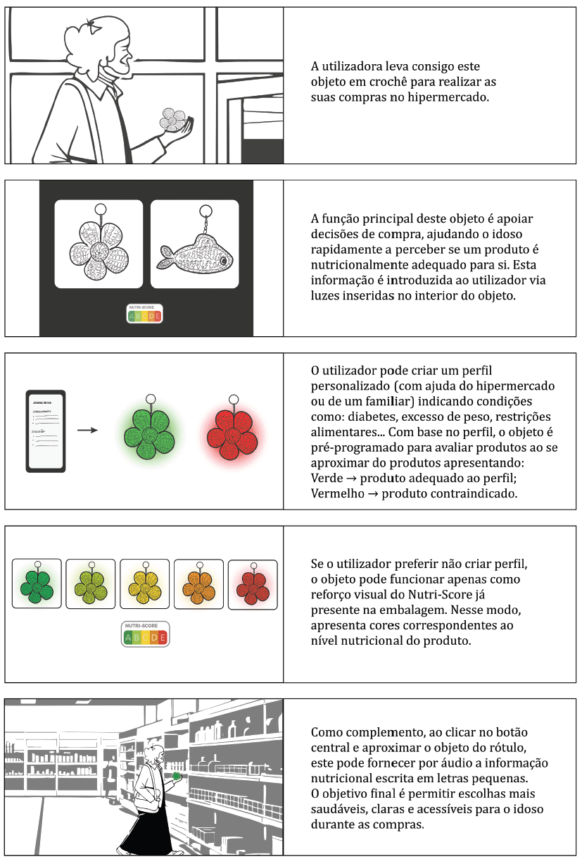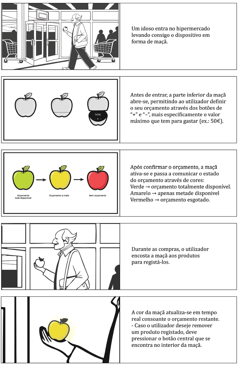 O crescente envelhecimento populacional tem trazido consigo novos desafios e preocupações, que incidem sobre todo o tipo de situações diárias. Este novo panorama demográfico realça a necessidade de existirem produtos, serviços e sistemas que considerem as limitações e necessidades que advêm, entre outras coisas, da idade de cada utilizador. Isto adquire um destaque particular quando se considera a atual experiência de compra em grandes superfícies comerciais e a falta de tentativas ou soluções adequadas para se minimizar as dificuldades dos idosos durante a realização da mesma, tanto a nível das tecnologias, como daquilo que o espaço de compra oferece. Em resposta a isto, surge este projeto que incide sobre as possibilidades de adaptação e facilitação do atual processo de compra para uma população envelhecida.