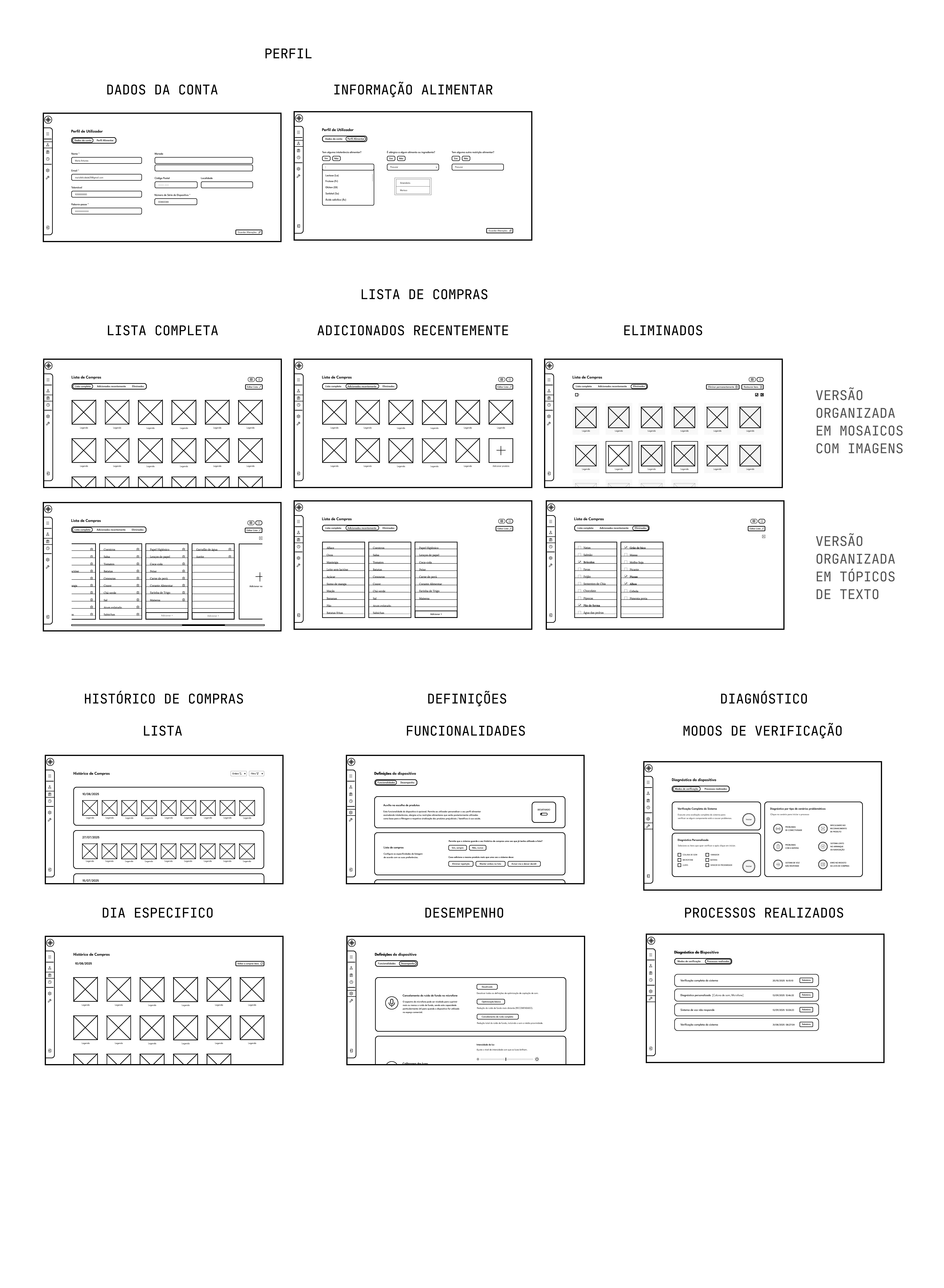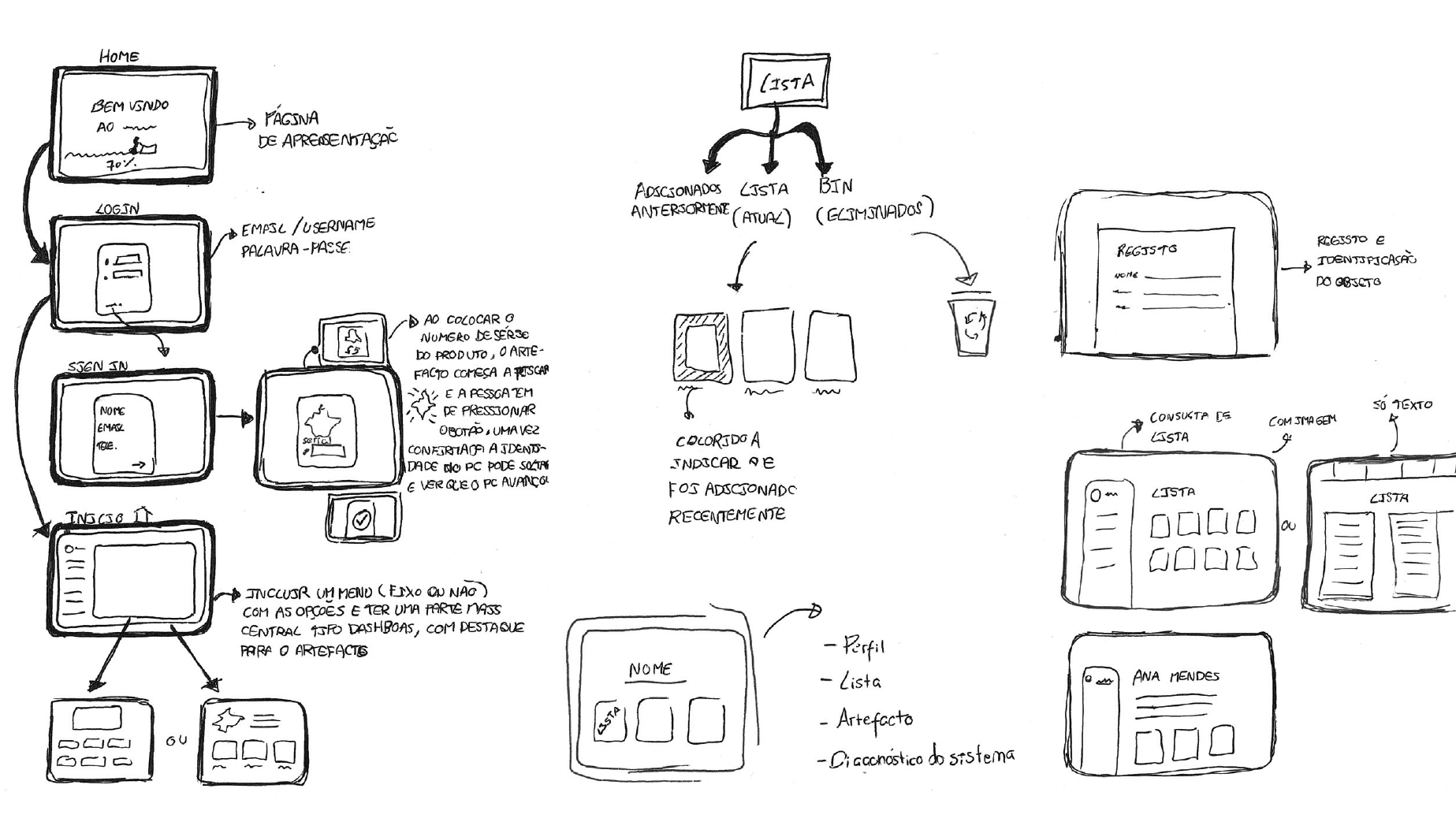 Esquemas e esboços do produto