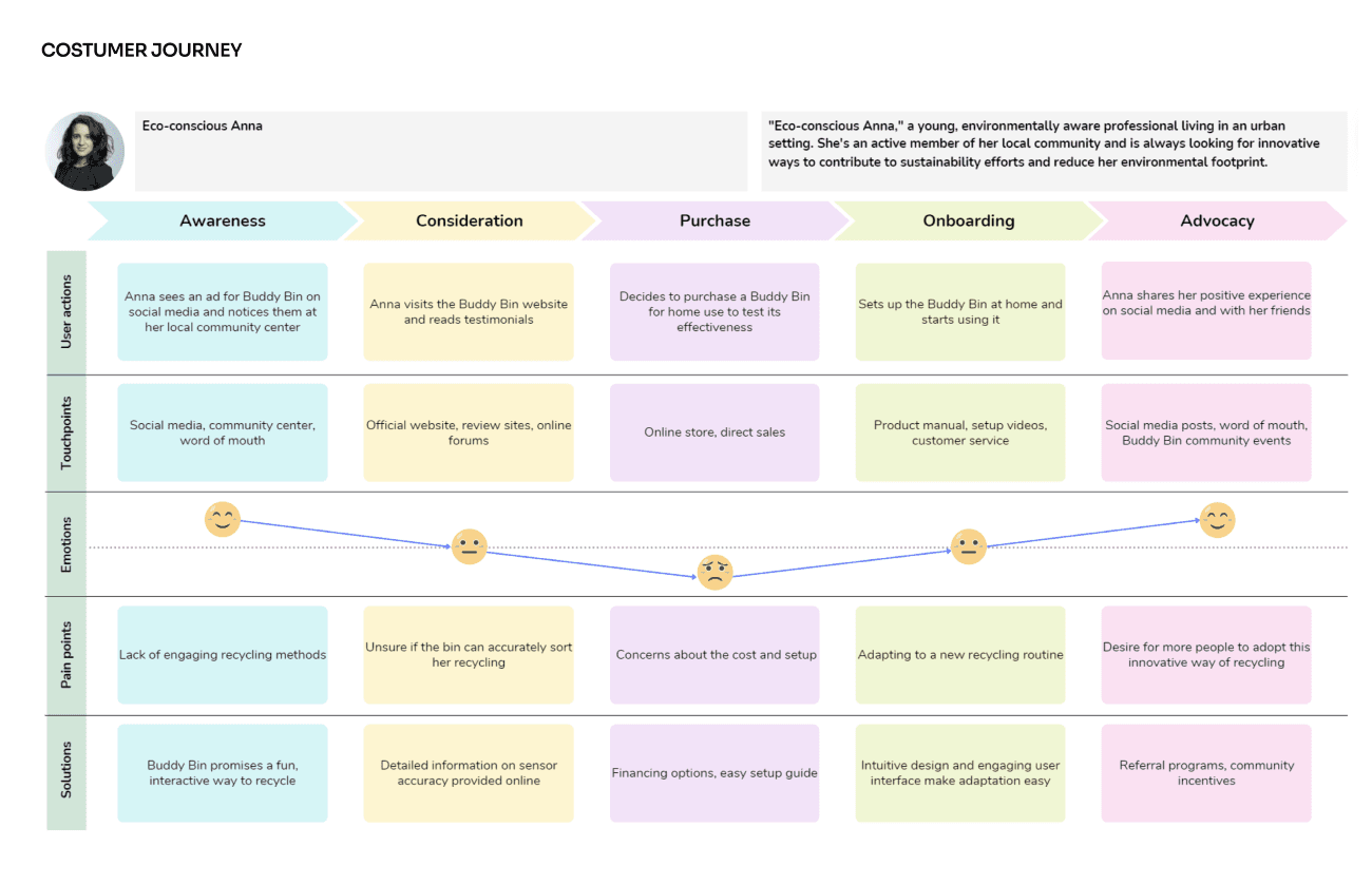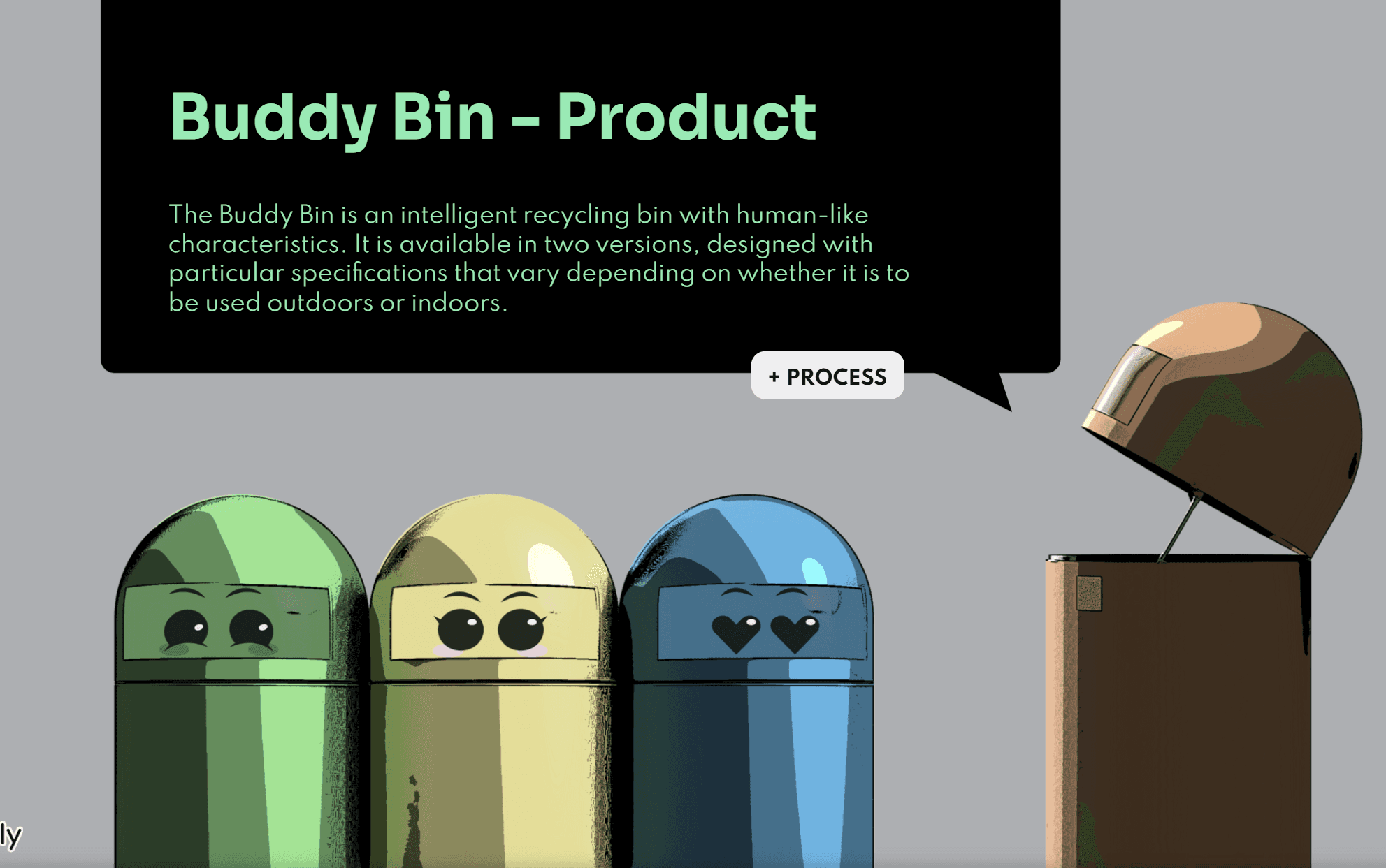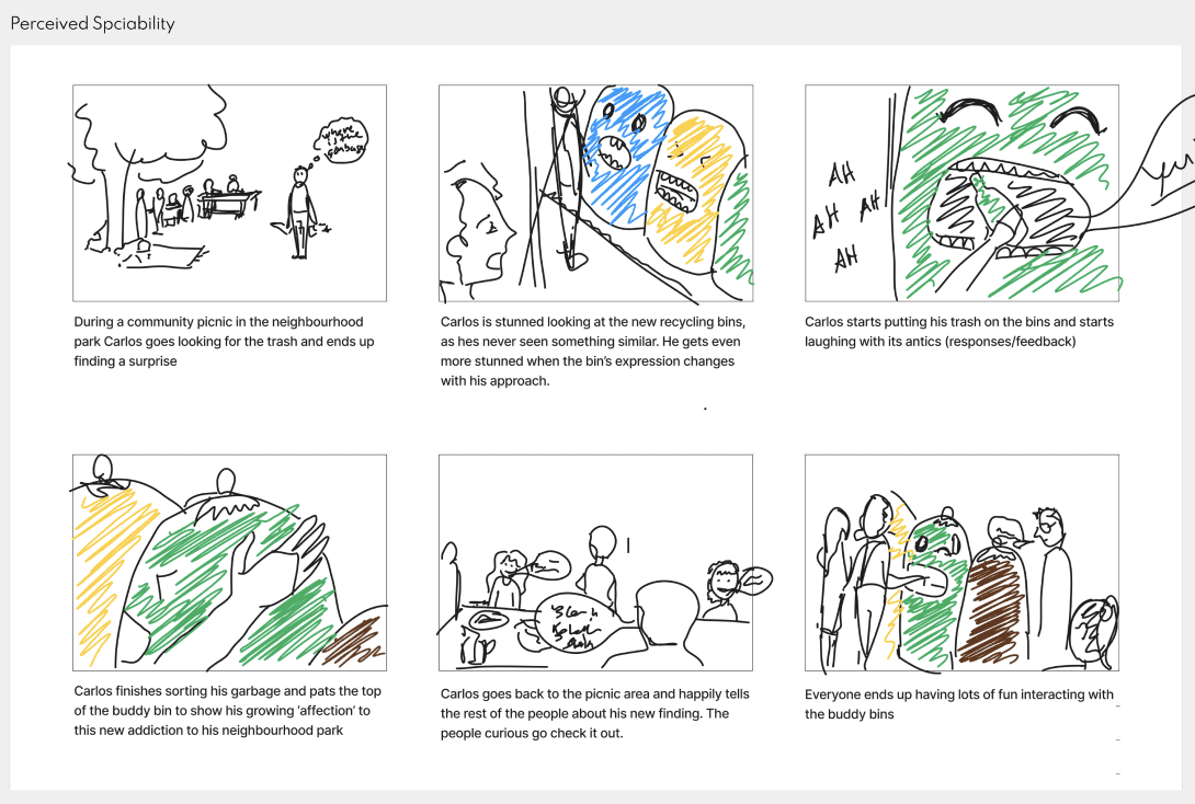 Partindo de um artigo publicado que comprova que a antropomorfização no momento das compras gera mais felicidade no consumidor, foi nos proposto que criássemos um produto, serviço ou sistema. Além de ter como base esta premissa havia ainda a condicionante de que deveria haver um foco em práticas sustentáveis e na promoção das mesmas. Adicionalmente, importa referir que o projeto foi desenvolvido em parceria com a Universidade Nova de Lisboa. Num lado estavam dois elementos do Mestrado de Design de Interação, e no outro estavam quatro de Marketing, tendo as tarefas sido divididas de acordo com as respetivas áreas de estudo.