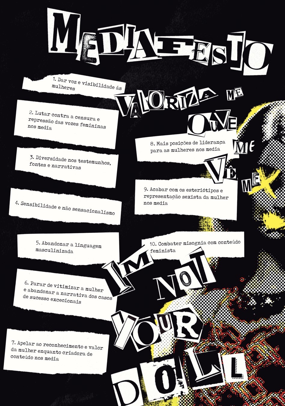 Partindo deste princípio, também nos media as mulheres magras e esbeltas aparecem mais frequentemente numa revista do que uma outra que não se enquadre nos mesmos parâmetros. (Já para não mencionar o facto de que muitas dessas mulheres que aparecem são muitas vezes objetificadas e sexualizadas). Deste modo, o nome I’m Not Your Doll surge como uma forma de revolta. Ele é por si só uma manifestação e luta em defesa de determinados ideais.